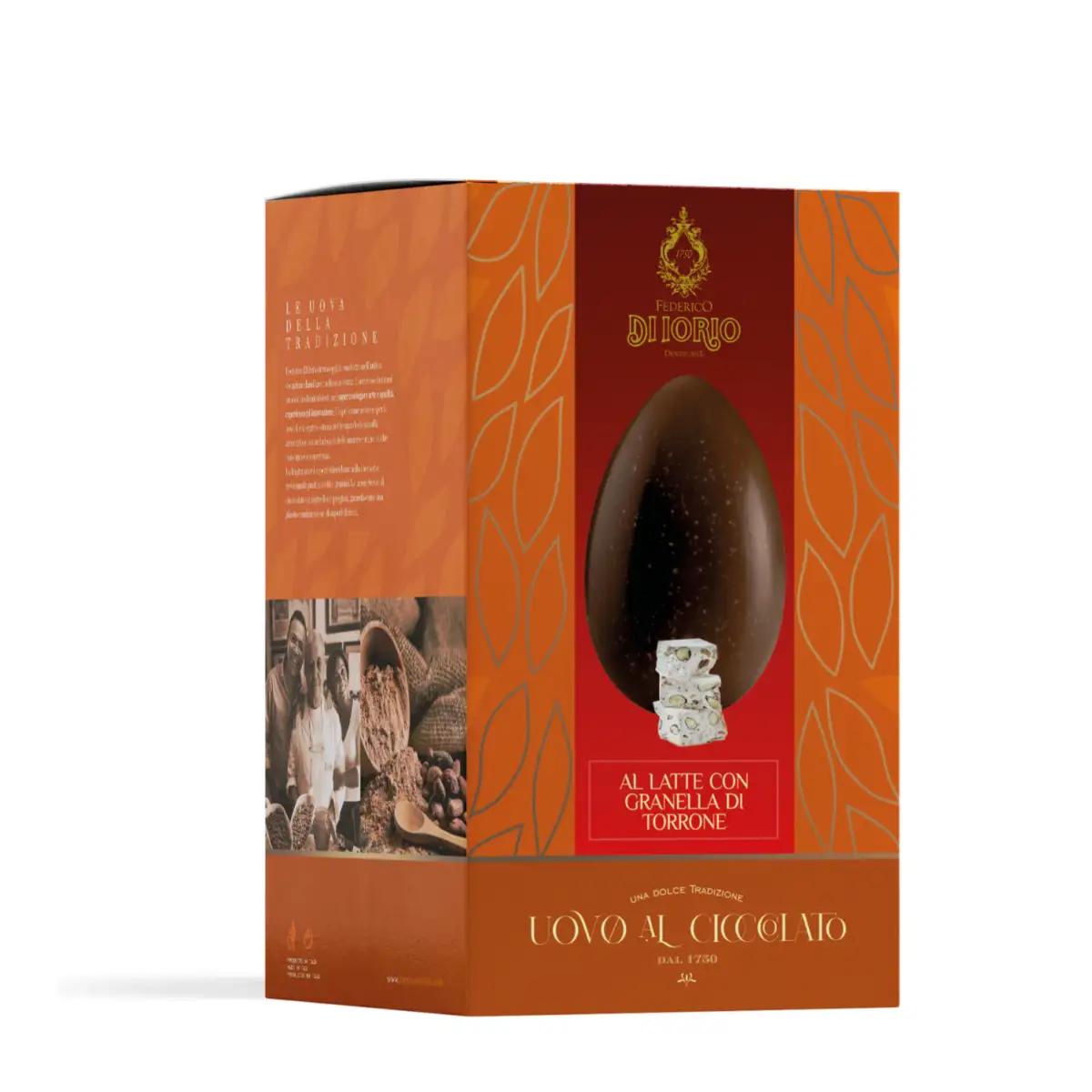 Il gusto avvolgente del cioccolato al latte arricchito con una nota croccante di piccoli pezzi di torrone, rende quest’uovo una vera prelibatezza.
